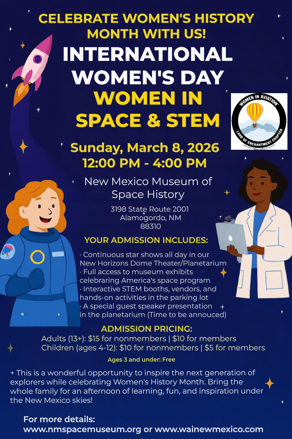 The New Mexico Museum of Space History is hosting an event to celebrate International Women’s Day!